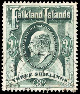 1904 3/- green (clean-cut perforations) with R3/3 ‘flying triangle’, fine used. SG 49 var, Heijtz 22av1 (£300)