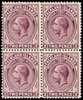 1912-20 2d maroon, perf 14 line, fine o.g. block of four, lightly hinged on the upper pair only. A very scarce multiple. SG 62b, £1700.