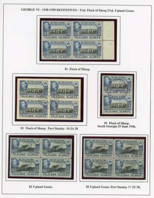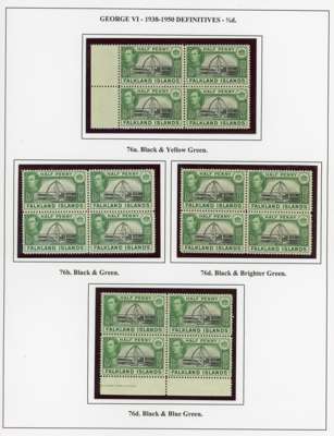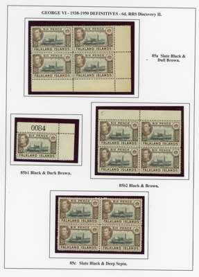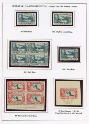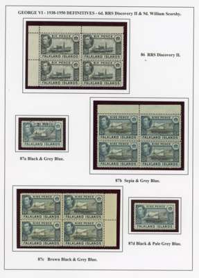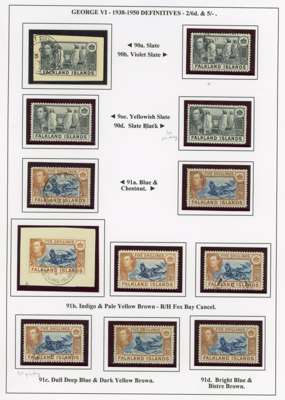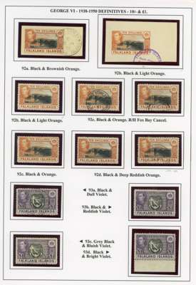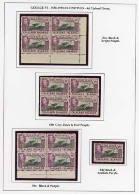 1938-50 display collection on leaves, arranged by Heijtz with multiples, mainly mint but some used. Includes better printings such as 4d reddish purple (Heijtz 84d) large part o.g., 5/- ‘indigo’ and 1950 thin paper large part o.g., 10/- including second printing large part o.g. and used with South Orkneys CDS. Viewing recommended. SG 146-163