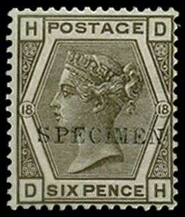 1882 6d Grey Pl.18. Very fine and fresh unused o.g. example lettered DH, overprinted "SPECIMEN" type...
