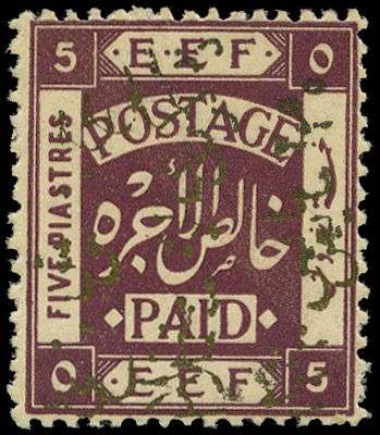 1923 5p purple with gold overprint double, large part creamy o.g. SG 105Aa, £650