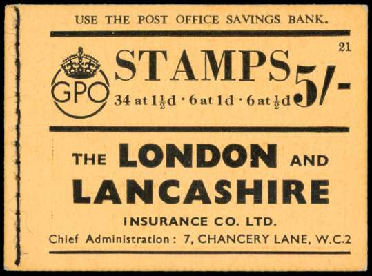 1938 5s Booklet (Edition 21). A very fine and fresh example. Scarce booklet. BD24. Cat £1,300.