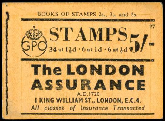 1938 5s Booklet (Edition 27). A fine example of this scarce booklet. BD24. Cat £1,300.