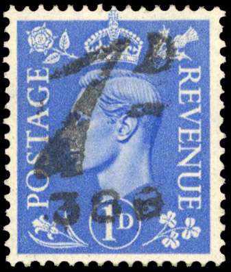 1951 1d Light ultramarine - Herne Bay Postage Due (SG504var). Fine unused example overprinted ‘1d/366’ locally to alleviate a shortage of postage due stamps on a couple of days in early June 1951. Very rare, no gum. SG504var.