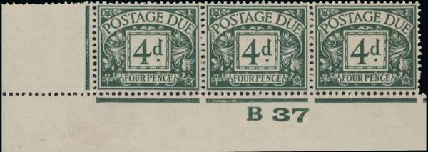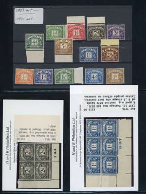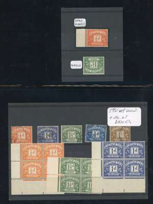 1937-52 King George VI Postage Dues. A wonderful group of postage dues including an unused set of each issue (SGD27-34 & D35-39) in singles, also with multiple control pieces, strips and blocks. Mostly consisting of unused examples but offered with a few used examples. Worth viewing. Cat £2,000+. SGD27-39. (46).