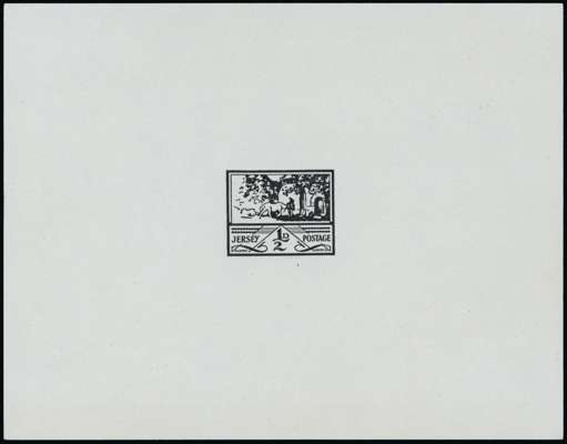 1943 ½ to 3d Jersey ‘Views’. Set of six imperforate black presentation proofs