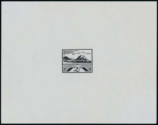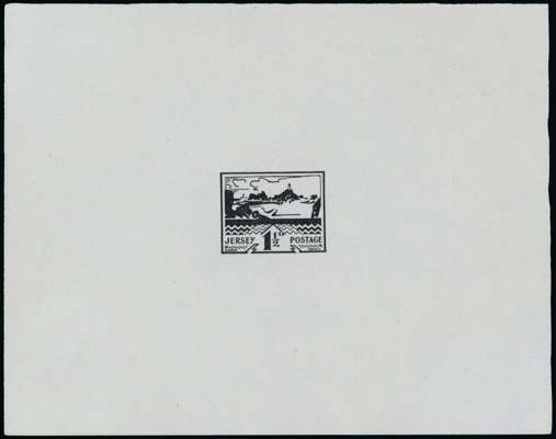 1943 ½ to 3d Jersey ‘Views’ Occupation Issue. Set of six imperforate black presentation proofs on good quality wove paper. An attractive group prepared for state officials; only six sets were produced. SG3-8. Cat. £2,400.