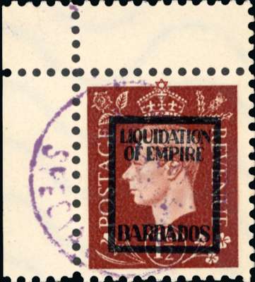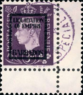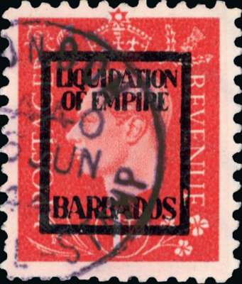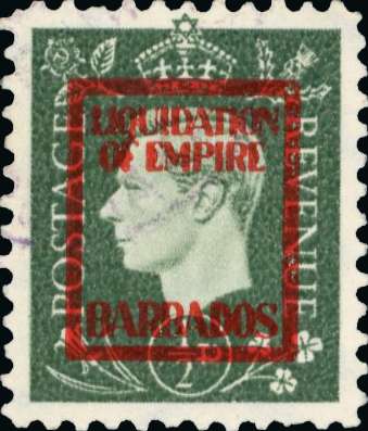 German Propaganda Forgeries. ½d - 3d set overprinted boxed LIQUIDATION OF EMPIRE BARBADOS, fine ‘used’