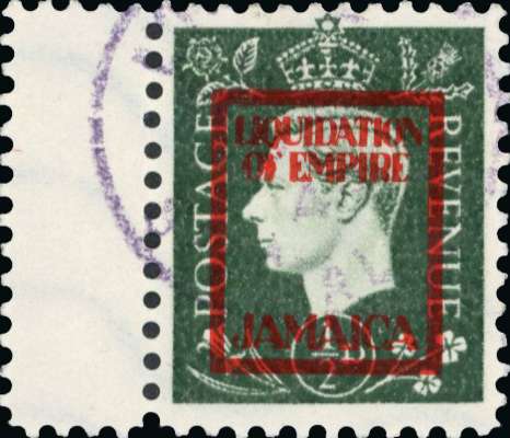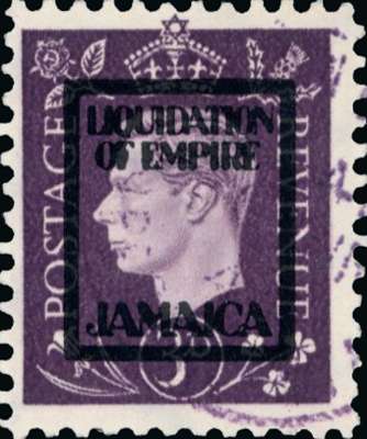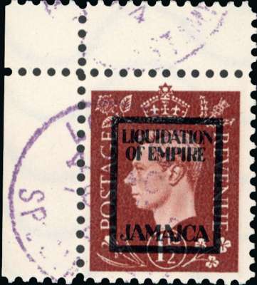 German Propaganda Forgeries. ½d - 3d set overprinted boxed LIQUIDATION OF EMPIRE JAMAICA, fine ‘used’