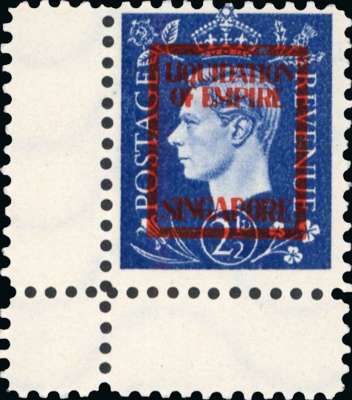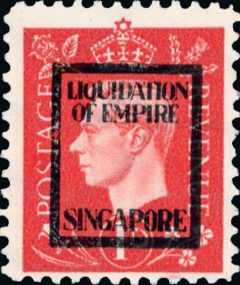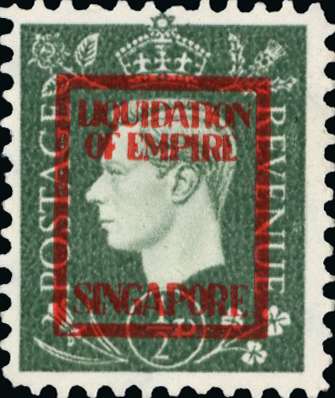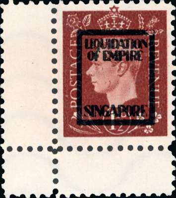 German Propaganda Forgeries. ½d - 3d set overprinted boxed LIQUIDATION OF EMPIRE SINGAPORE, fine unused