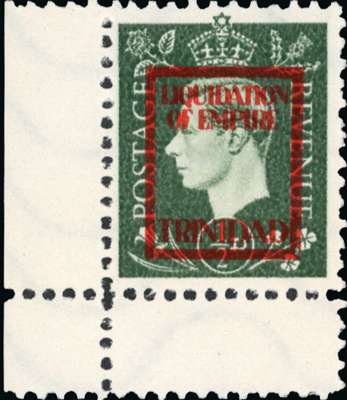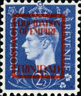 German Propaganda Forgeries. ½d - 3d set overprinted boxed LIQUIDATION OF EMPIRE TRINIDAD, fine unused
