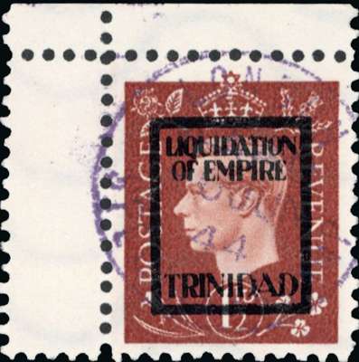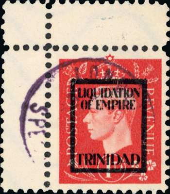 German Propaganda Forgeries. ½d - 3d set overprinted boxed LIQUIDATION OF EMPIRE TRINIDAD, fine ‘used’