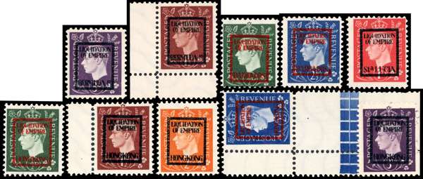 German Propaganda Forgeries. Barbados ½d and 2½d, Bermuda 1½d and 3d, St Lucia 1d and Hong Kong set less the 1d (5 values), fine unused