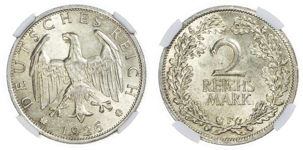 Germany. Weimar Republic AR 2 Reichsmark. 1926F.