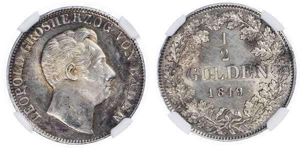 Germany, States, Baden. Leopold I AR 1/2 Gulden. 1849.