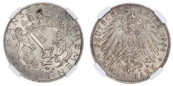 Germany, States, Bremen. Free City AR 2 Marks. 1904J.
