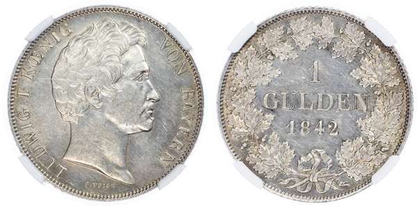 Germany, States, Bavaria. Louis I AR 1 Gulden. 1842.
