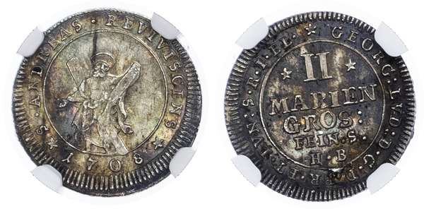 Germany, States. Brunswick-Luneburg-Calenberg-Hannover AR 2 Marien Groschen. 1708 HB.