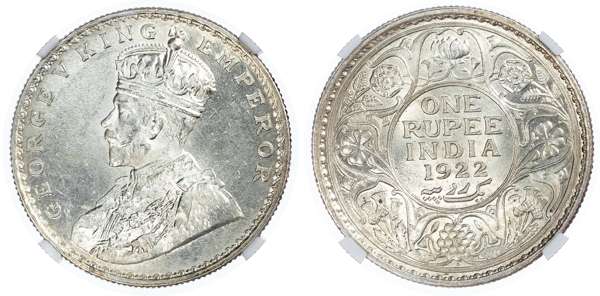 India, British Colonial. George V AR 1 Rupee. 1922(B).