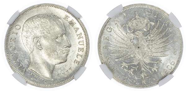 Italy. Vittorio Emanuele III AR Lire. 1906R.