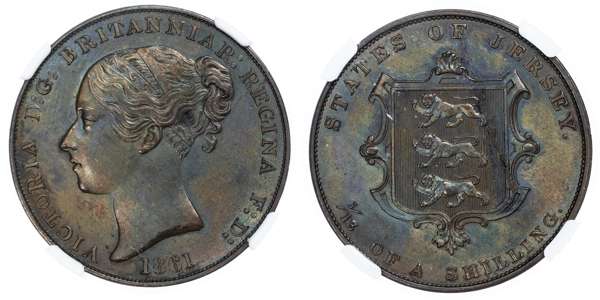 Jersey, British Dependency. Victoria CU 1/13th Shilling. 1861.