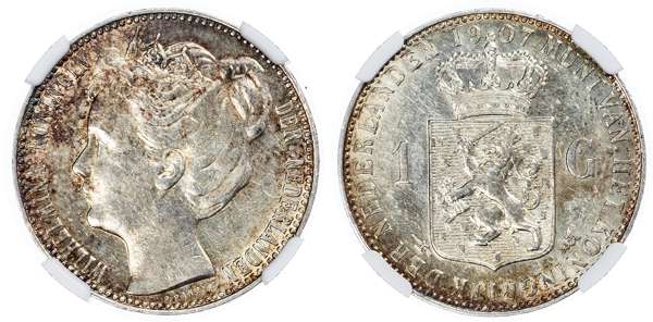Netherlands. Wilhelmina AR Gulden. 1907.