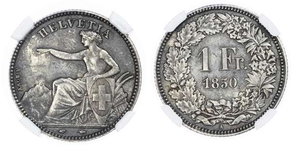 Switzerland. Federal State AR 1 Franc. 1850A.