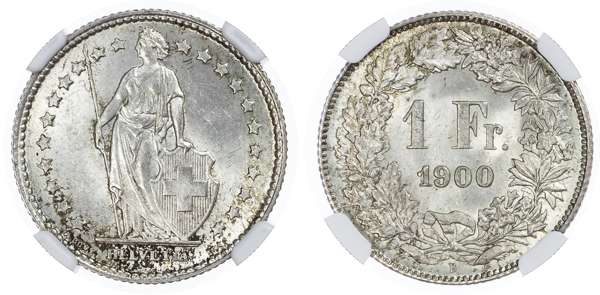 Switzerland. Federal State AR 1 Franc. 1900B.