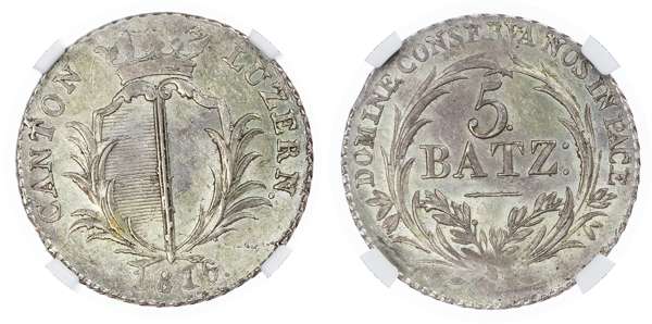 Switzerland, Cantonial. Lucerne AR 5 Batzen. 1816.