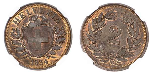 Switzerland. Federal State Æ 2 Rappen. 1934B.