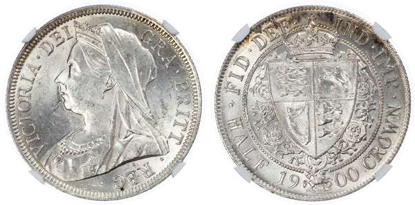 Great Britain. Victoria AR Halfcrown. 1900. VICTORIA·DEI GRA·BRITT · REG, T.B. below Veiled Old Head bust left / ·FID·DEF· IND·IMP· HALF CROWN divided by date below crowned Coat of Arms with ornate border. S: 3938. 14.14g, 32.30mm, 12h.