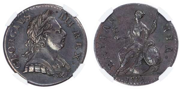 Great Britain. George III CU Halfpenny. 1771. GEORGIVS· III· REX· draped bust right / BRITAN NIA· legend divided over britannia seated, date in exergue. S: 3774. 10g, 29mm, 6h.