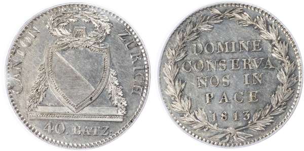 Switzerland, Cantonial. Zurich AR 40 Batzen. 1813B.