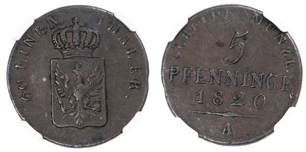 Germany, States. Prussia Copper Pattern 5 Pfenninge. 1820A.