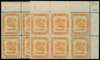 1947-51 5c orange matched corner blocks of six in both perforations with R1/8 ‘5c’ retouch, fine unmounted o.g. SG 82a, c, £235