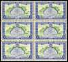 1949 3d green and ultramarine with watermark inverted, unused block of six without gum. Centre right stamp with a defect at right, still an unusual multiple. SG 153aw, £600