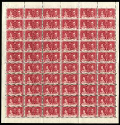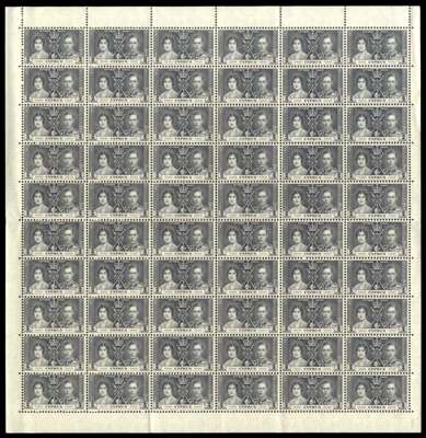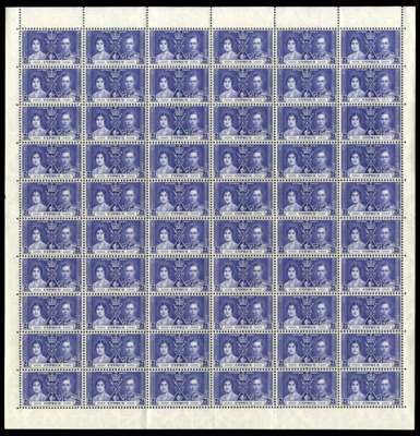 1937 Coronation set in folded sheets of sixty, unmounted o.g. SG 148-150, £780
