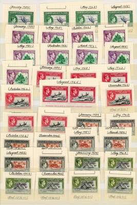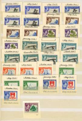 1939-55 definitives printings collection (66) mint, complete per Potter & Shelton listing bar the 1942 1d (which is represented by an identified example from another collection). Also includes the post-1952 printings and some not ascribed to a specific printing. Believed to have a very high degree of accuracy. SG 43-54