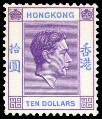 1946 $10 deep bright lilac and blue from Requisition D, unmounted o.g., the gum lightly toned but a good reference example. SG 162a, £300