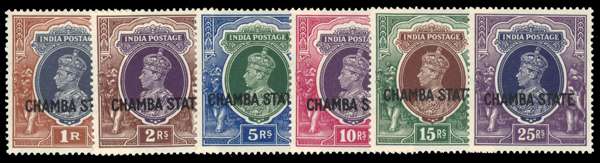 1938 CHAMBA STATE 1Rr- 25r, fresh large part o.g. SG 94-9, £1035