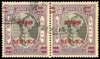 1947 3p on ½a black and violet horizontal pair with surcharge double, one inverted, fine used. SG 71e, £160