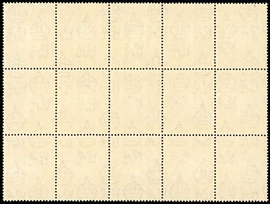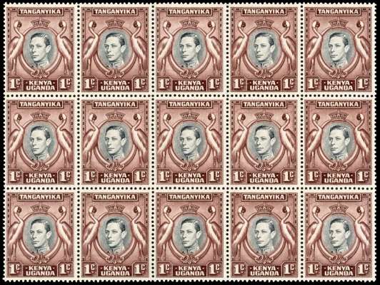 1942-51 1c perf 13¼ x 13¾ unmounted o.g. block of fifteen, the central stamp showing ‘A’ of CA omitted. SG 131ab, £225