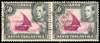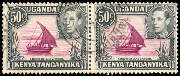 1950 50c perf 13 x 12½ horizontal pair, fine used, left stamp with dot in scroll and right stamp without. Postmark well clear of scrolls. SG 144eb, £160
