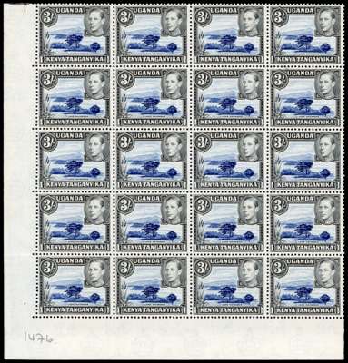 1950 3/- perf 13 x 12½ lower left corner block of twenty, fresh unmounted o.g. SG 147ac, £1100
