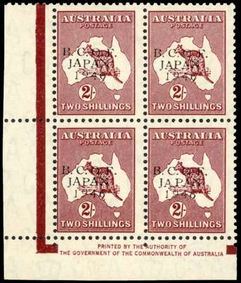 1946-7 lower left corner block of four with By Authority imprint, fine unmounted o.g. SG J6, £200
