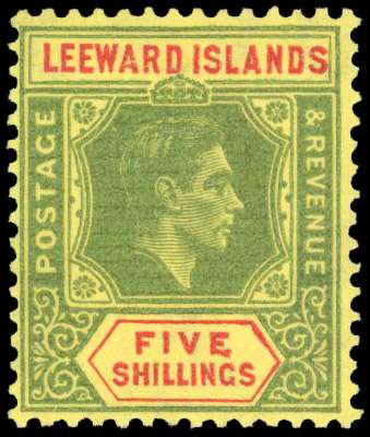 1943-4 5/- green and red on yellow ordinary paper, R3/5 repair to damaged value tablet, large part o.g. Ex Stuart Stokes. SG 112bb, £1200