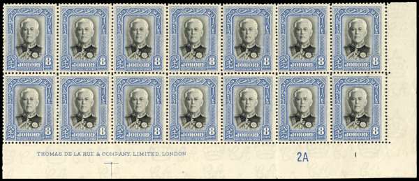 Malaya Johore SG 130 Plate/imprint block mint
