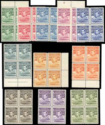 1938-54 set of eleven in unmounted o.g. blocks of four. SG 18-28, £520