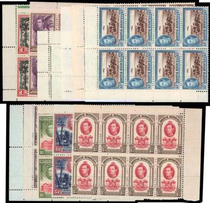 1938-47 set of twelve in unmounted o.g. corner blocks of eight (save the 4c, which is in two blocks of four), fine and fresh. SG 150-161, £1800