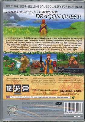 This lot contains a factory sealed copy of Dragon Quest - The Journey of the Cursed King for the Sony PS2. This game is for the PAL region/territory and the platinum grey label.